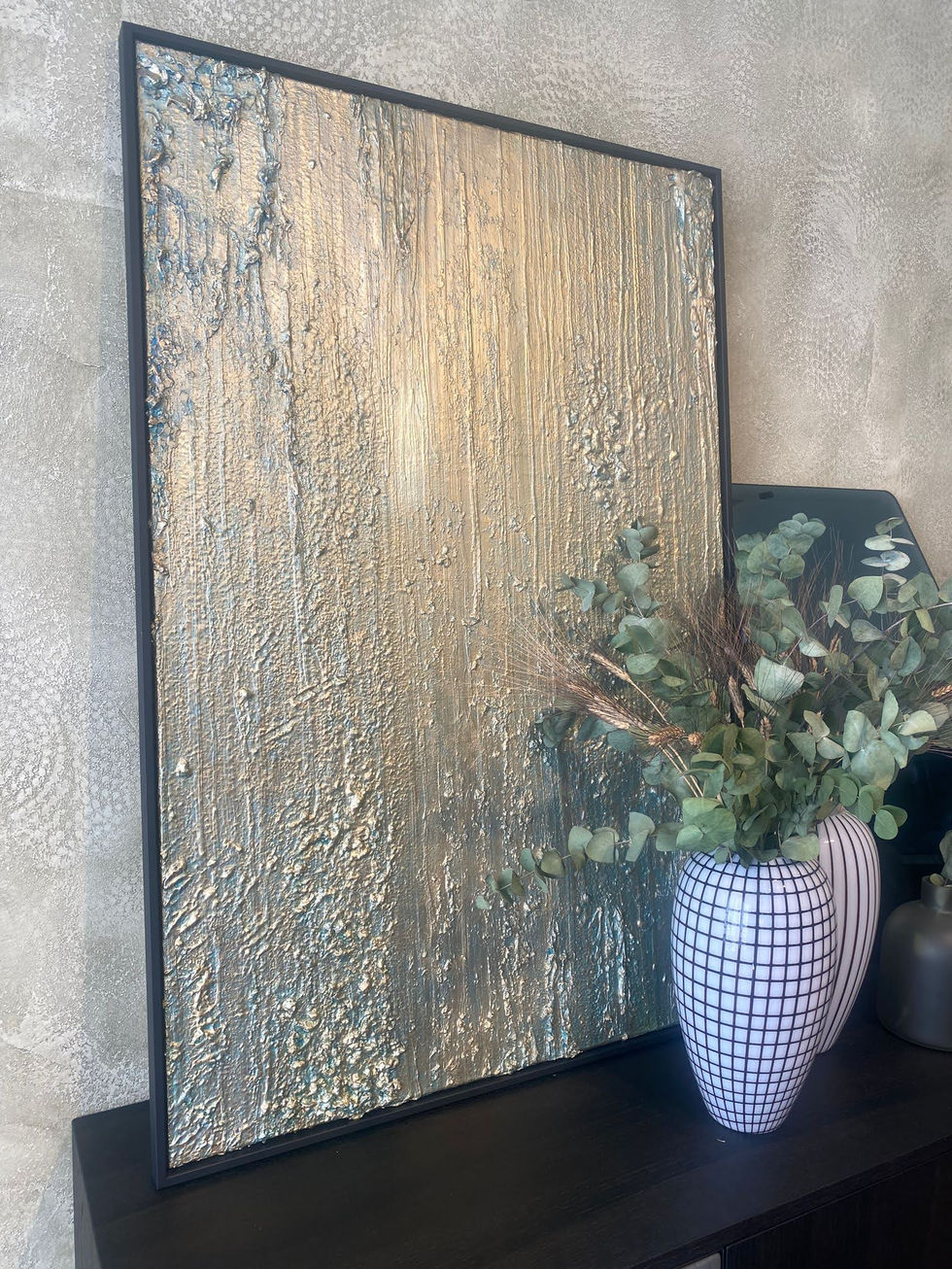 L'opera si ispira alla "golden hour", ai tramonti della laguna veneziana dove i raggi del sole incontrano il mare e si fondono in gocce di puro oro.